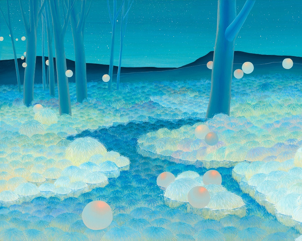 A:之前在台南的時候,我很喜歡去海邊看海。因為台南很熱,基本上都是傍晚出去,加上南部又很悠閒,一待就是待到深夜,所經歷的都是日夜交界時間,這段魔幻時刻會有很多事在發生,就像作品〈邊境微光〉,你會覺得當下好像有很多事情正在進行,我才將日與夜的晨曦光影同時用畫筆記錄下來。