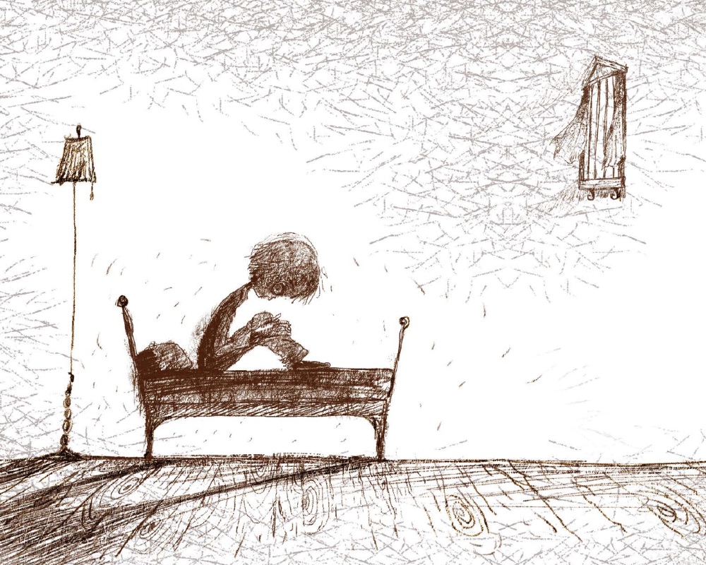 在兩本繪本中,不難發現插畫家蠶山(Jam San)大多以單色線條感呈現,在一筆一劃的斑駁陰鬱中,透過蠶山(Jam San)的巧手詮釋,似乎更能體會少年逐漸被惡夢吞噬的無力感,與《喪屍小孩》中母親伶仃身影對比喪屍小孩的飢渴神情,說書口吻搭配隱晦場景,每翻開一頁,讓人不禁沈浸在超現實的暗黑世界裡。
