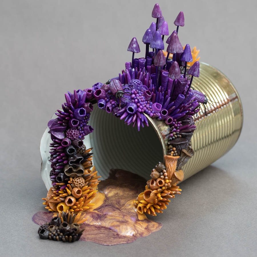 當五顏六色的真菌與植物從各種物品中生長蔓延,會是什麼夢幻景致?法國藝術家Stephanie Kilgast實現了!以軟陶為創作媒材的她,結合了廢棄鋁罐、玻璃瓶、陶瓷餐盤等要素,在鮮豔色彩與栩栩如生的細節下,讓無生命的雕塑成為了自然有機的生命展現。快跟著d編一同來欣賞她的作品吧!