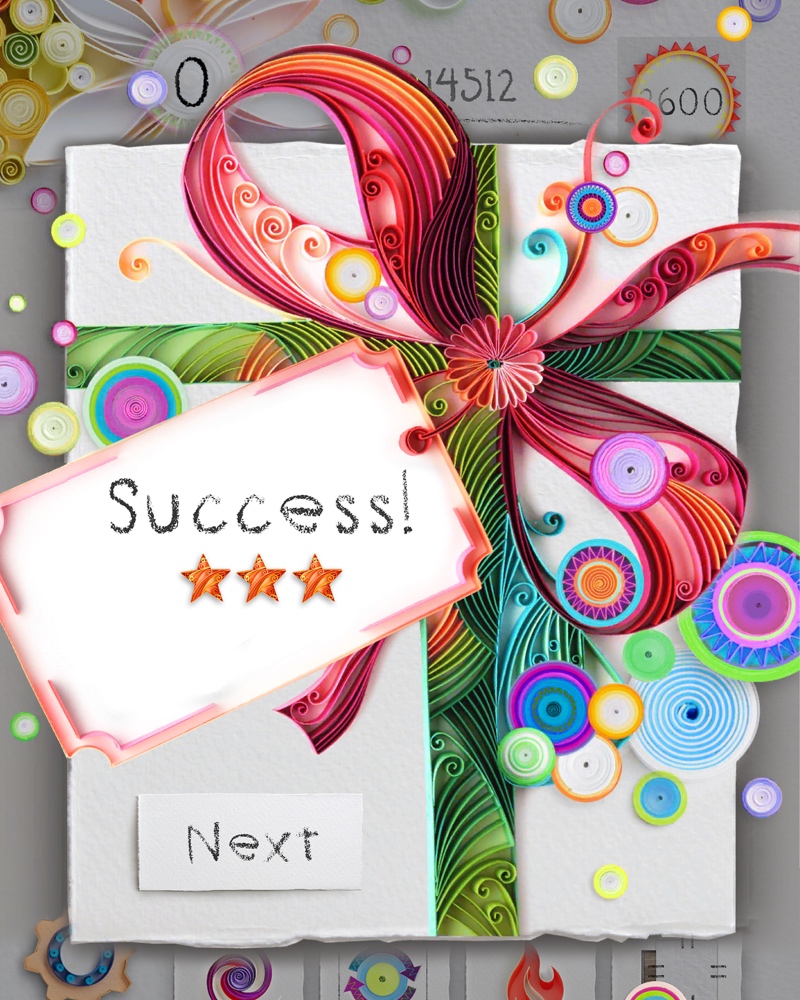 若打開《Paper Mingle》,你會發現遊戲介面相當明亮繽紛、指示清楚好上手,搭配著悅耳的背景音樂也讓心情輕鬆了不少。Yulia透露除了紙藝創作之外,讓紙藝能活潑互動的工程編碼與音軌皆自出朋友之手。(朋友太強大啦~)在每個關卡中,無須花費太多時間,便能輕鬆破關晉級,Yulia表示自己也會在工作空閒時來玩個幾局放鬆,「無論我多熱愛紙藝創作,還是需要短暫休息與其他活動,避免耗時工程帶來的疲乏感(我小孩現在還玩得比我好呢!)」。
