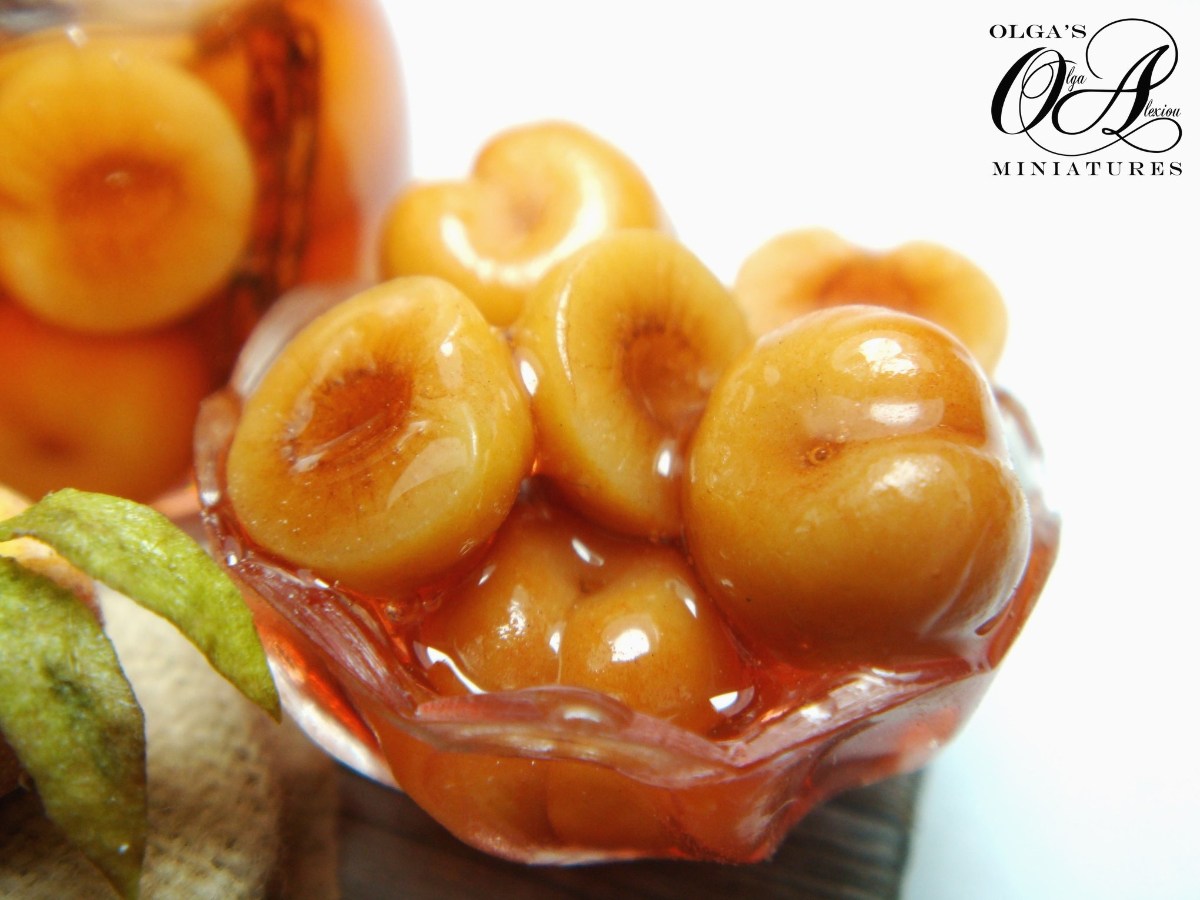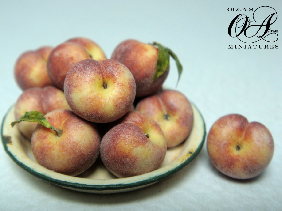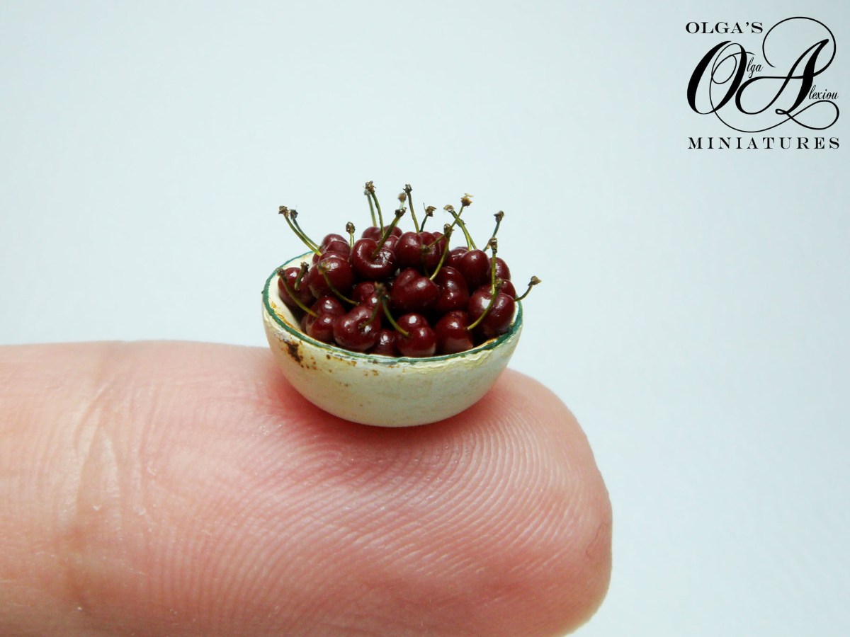 「你可以再靠近一點」,在Olga Alexiou的1:12製作比例下,猶如照片般擬真細膩的櫻桃、水蜜桃,即使放大幾倍觀看,也找不著任何缺陷與瑕疵!每一顆光澤飽滿的櫻桃與渾圓碩大的蜜桃,皆是她以聚合物黏土製成。