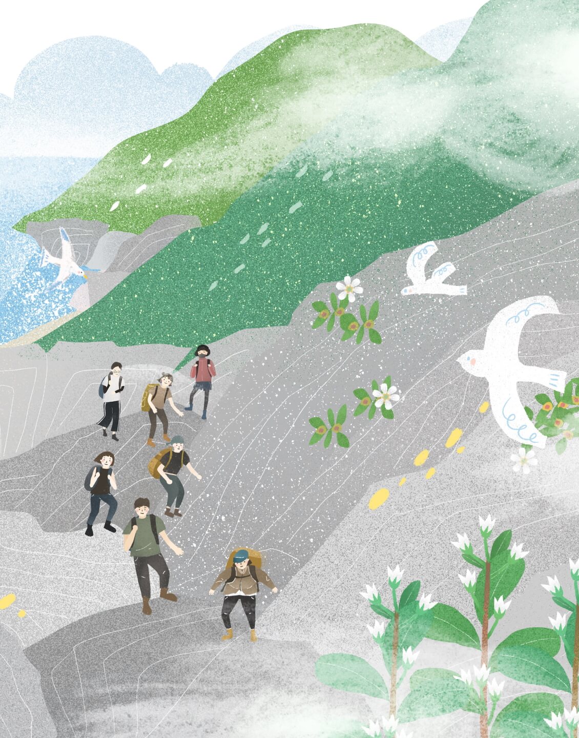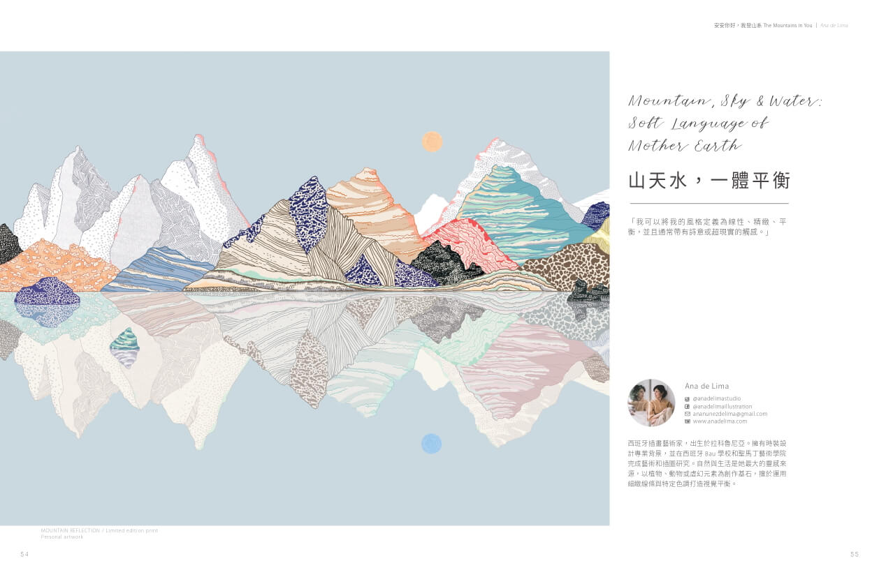 山,不僅是大自然對美的展現,他也可以是賦予人們能量的存在,或許你會因為不喜歡流汗、不喜歡體力消耗的活動,而不願意體驗山的魅力,本期專題邀請了台灣、日本、澳洲與西班牙的插畫藝術家,有的愛畫山、有的也愛登山、也有的就只是單純地喜歡山,希望這次透過藝術家的筆下畫面,替山為大家自我介紹說聲你好。