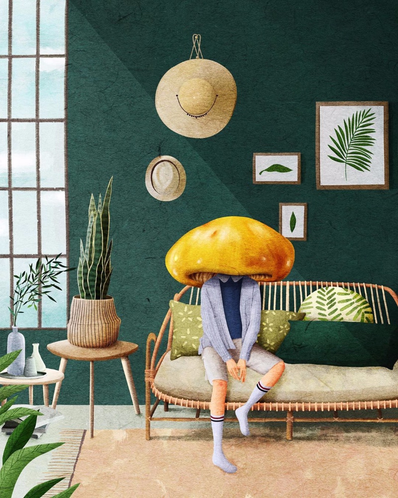 遊走於城市的蘑菇人?香港插畫家Ceci Lam將蘑菇擬人化融入真實世界